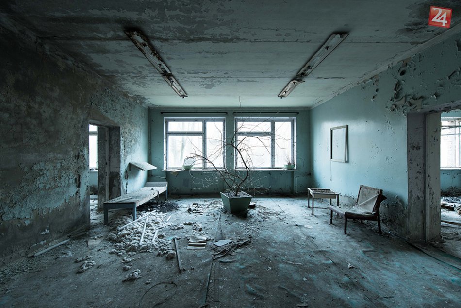 zdroj: Media & Communication Consulting, spol.s r.o. Čakáreň v pozostatkoch nemocnice v meste Pripiať. Miestnosť mi padla do oka kvôli svojim farbám a zoschnutému rastlinnému životu. Máte pocit, že čas tu zamrzol.