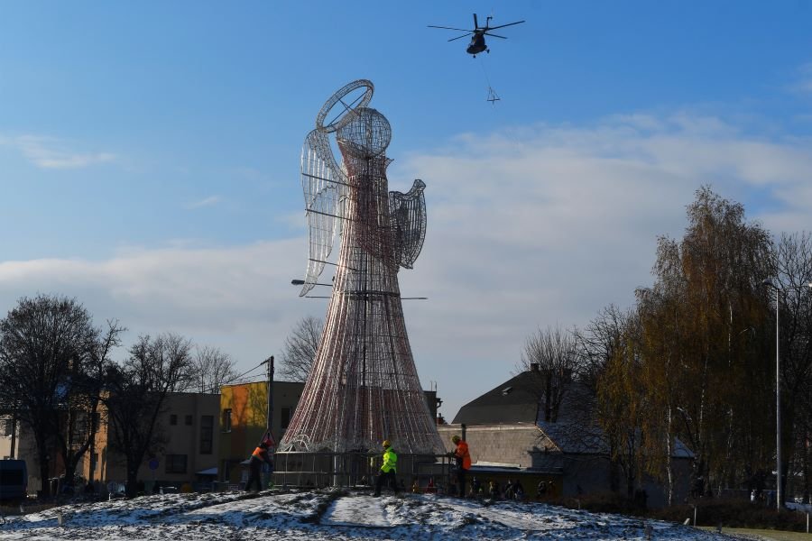 Galéria k článku Symbol Vianoc je späť: Dlho očakávaný anjel úspešne pristál v Poprade, VIDEO