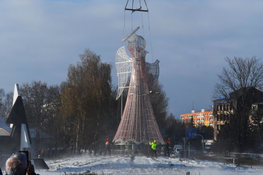 Galéria k článku Symbol Vianoc je späť: Dlho očakávaný anjel úspešne pristál v Poprade, VIDEO