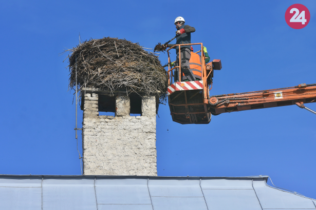 Galéria k článku Bocianie hniezdo v Spišskej Belej upravili: Vážilo viac ako tonu, boli v ňom aj káble či fólie, FOTO, VIDEO