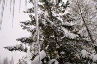 Tento div prírody visí zo strechy jednej popradskej školy. Neublíži však nikomu, od chodníka je ďaleko. Žiaci odhadli jeho dĺžku na dva metre...