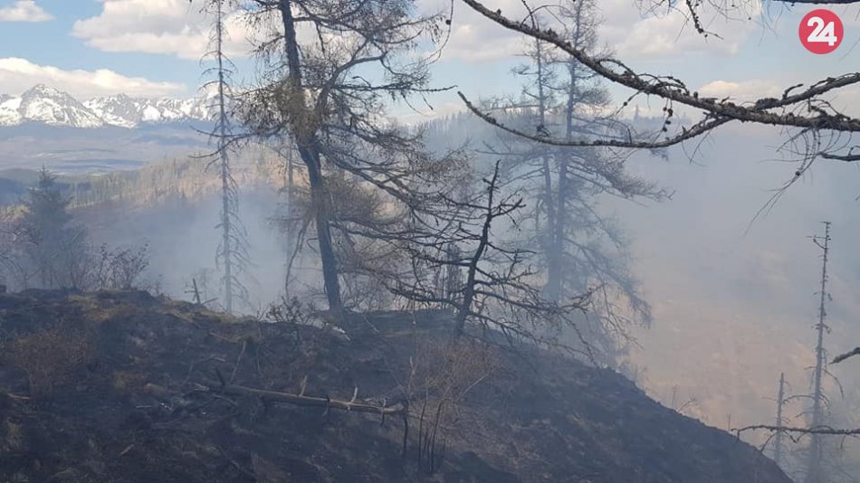 Galéria FOTO z požiaru v Kravanoch: Hasiči bojujú s ohňom v ťažkom teréne