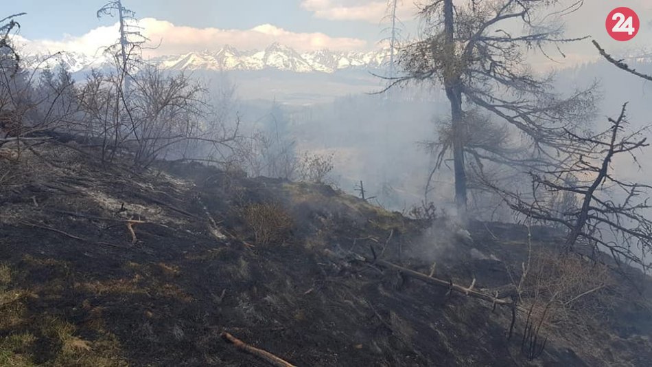 Galéria FOTO z požiaru v Kravanoch: Hasiči bojujú s ohňom v ťažkom teréne