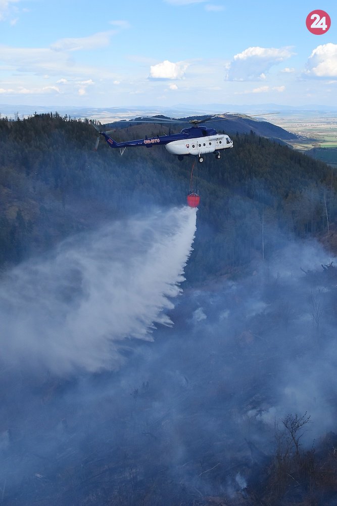 Galéria FOTO z požiaru v Kravanoch: Hasiči bojujú s ohňom v ťažkom teréne