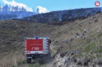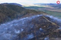 FOTO z požiaru v Kravanoch: Hasiči bojujú s ohňom v ťažkom teréne