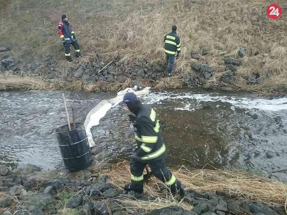 Galéria Hasiči zasahujú v Štrbe: Poplach spôsobila neznáma látka v potoku