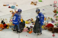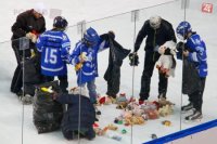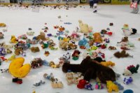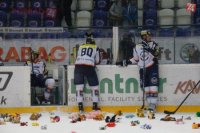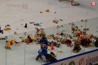 Hokejoví fanúšikovia zahádali ľad plyšovými hračkami