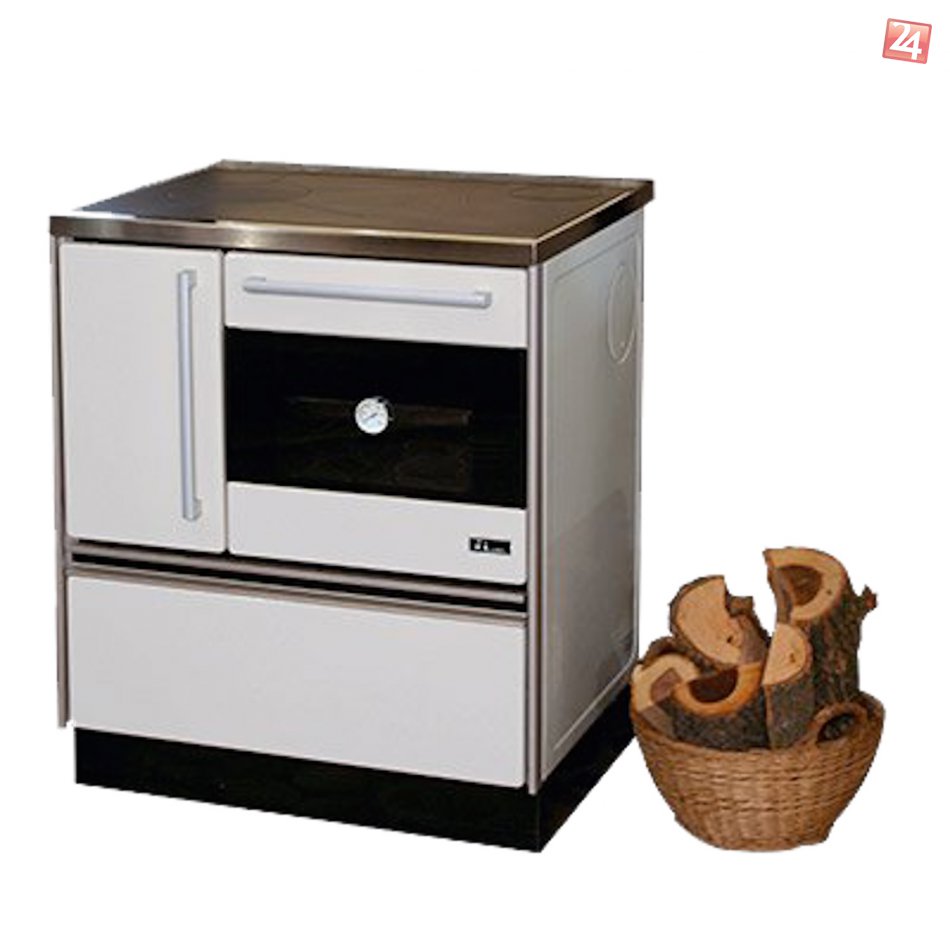 Sporák ROYAL NEW výkon 7,5 kW, rozmer 85x72x65 cm, dymovod ø 120 mm, zadný, bočný, vrchný, hmotnosť 115 kg, palivo drevo, rozmer ohniska 26x18x38 cm, účinnosť 62 %, plech do rúry, rúra presklená, s teplomerom, bočný vývod stred 68 cm, zadný 45 cm