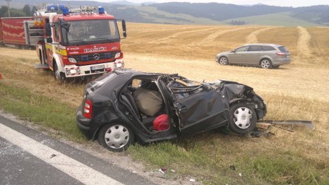 Galéria Medzi Bušovcami a Spišskou Belou skončilo auto na streche. Zranenú hasiči vystri