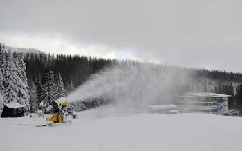 Galéria Mínusové teploty tešia lyžiarov. Vlekári začali zasnežovať svahy
