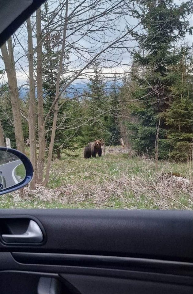 Galéria Objektívom: Medveď pózoval vodičovi pred autom len pár metrov ďalej
