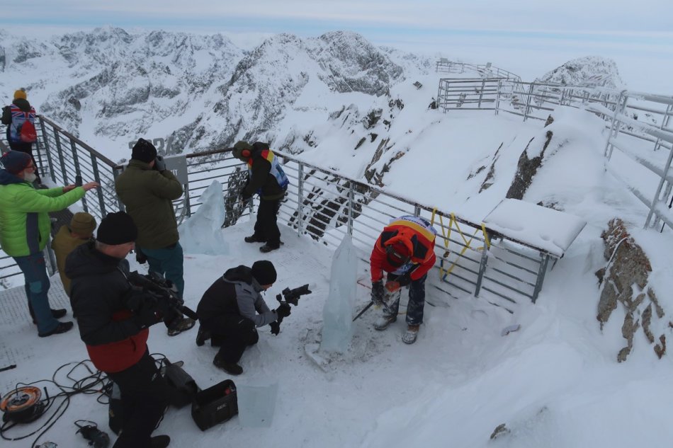Galéria k článku Začínajú majstrovstvá sochárov: Na Lomnickom štíte už z ľadu vytesali dvoch vlkov, FOTO