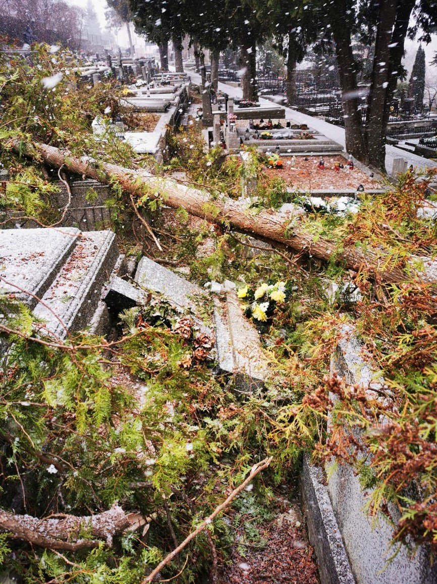 Galéria Objektívom: Silný vietor v Levoči vyvracal stromy, spadli aj na cintorín