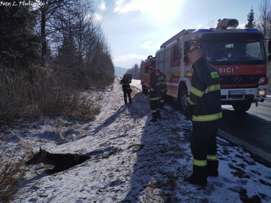 Galéria k článku Netradičná záchranná akcia: Jelenica uviazla v TAKEJTO diere pri ceste! FOTO