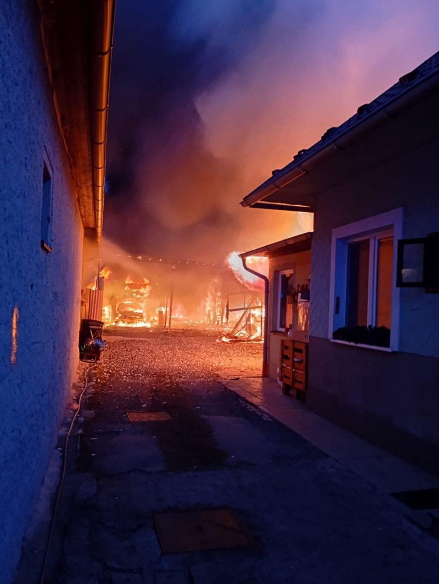 Galéria k článku Požiar v Spišskom Štiavniku: Škoda je v státisícoch eur, zhorela autodielňa, kde bolo 5 áut