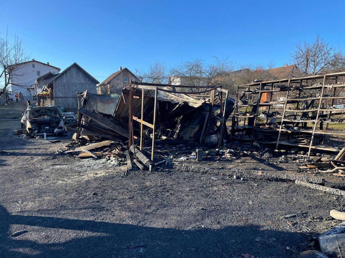 Galéria k článku Požiar v Spišskom Štiavniku: Škoda je v státisícoch eur, zhorela autodielňa, kde bolo 5 áut