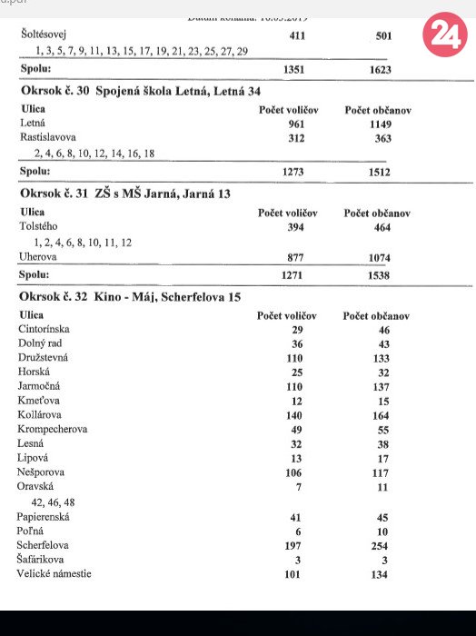Galéria Prehľad ulíc a okrskov v Poprade pre prezidentské voľby