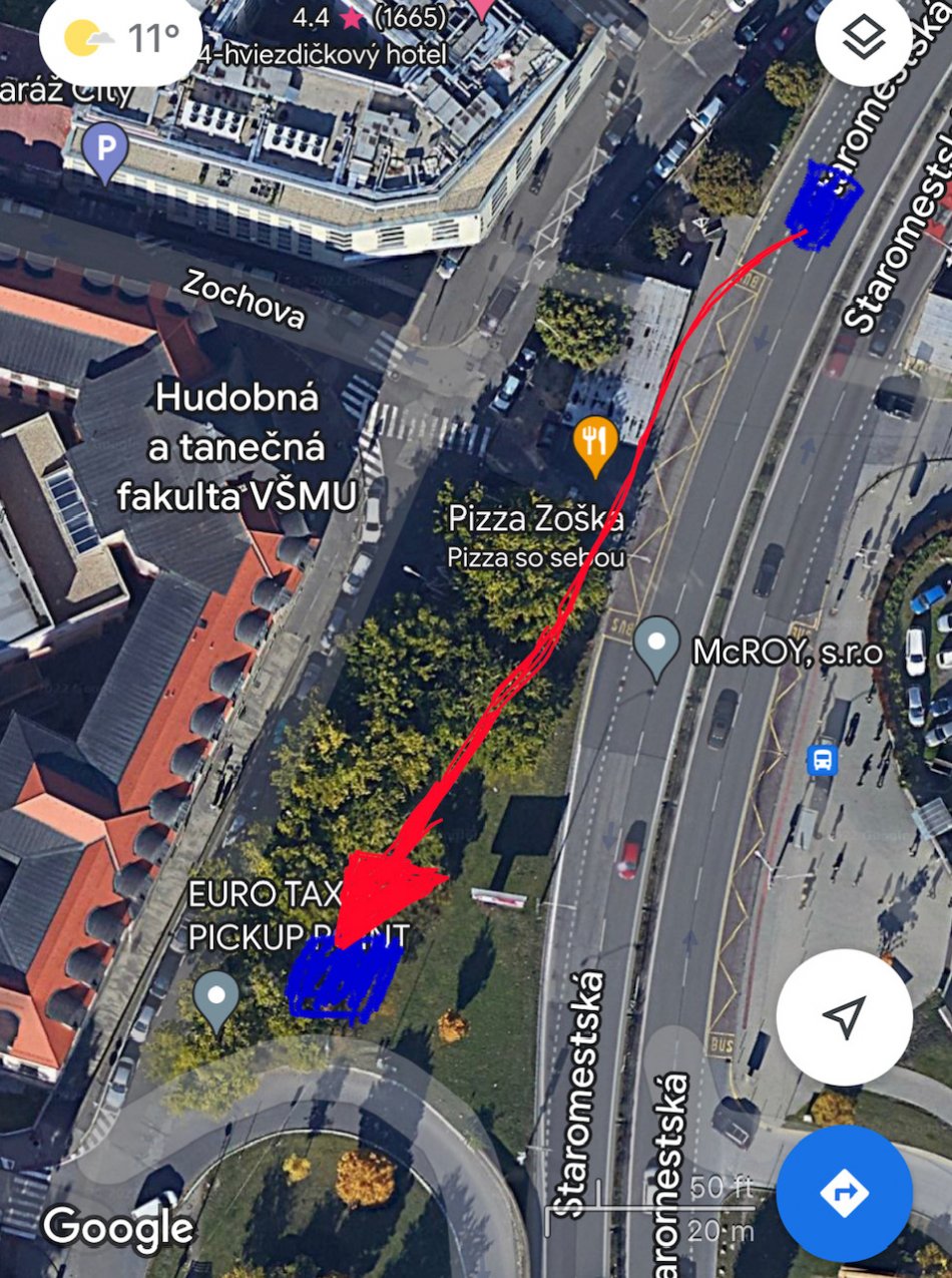 Šípka vyznačuje smer rýchlej jazdy vodiča Škody.