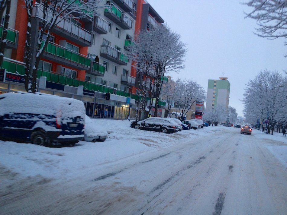 Galéria V Poprade pripadlo 30 cm snehu. Cestárom komplikujú prácu odstavené autá