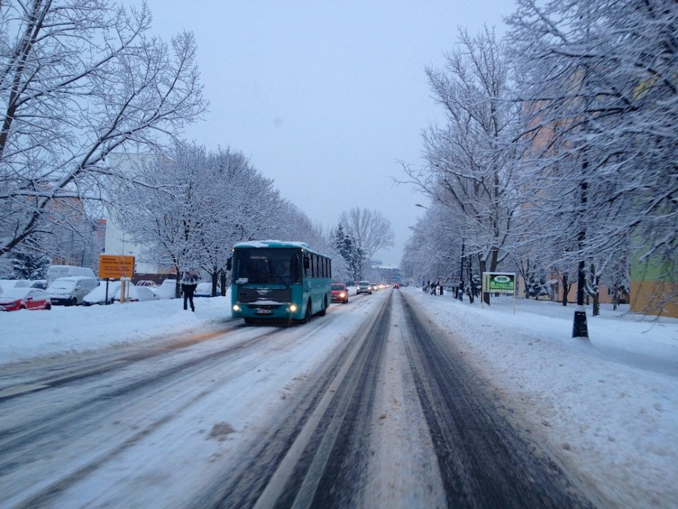 Galéria V Poprade pripadlo 30 cm snehu. Cestárom komplikujú prácu odstavené autá