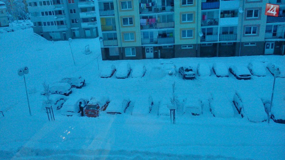 Galéria k článku Zasnežené mesto objektívmi Popradčanov: Kopy snehu a aj bežkár na parkovisku :)