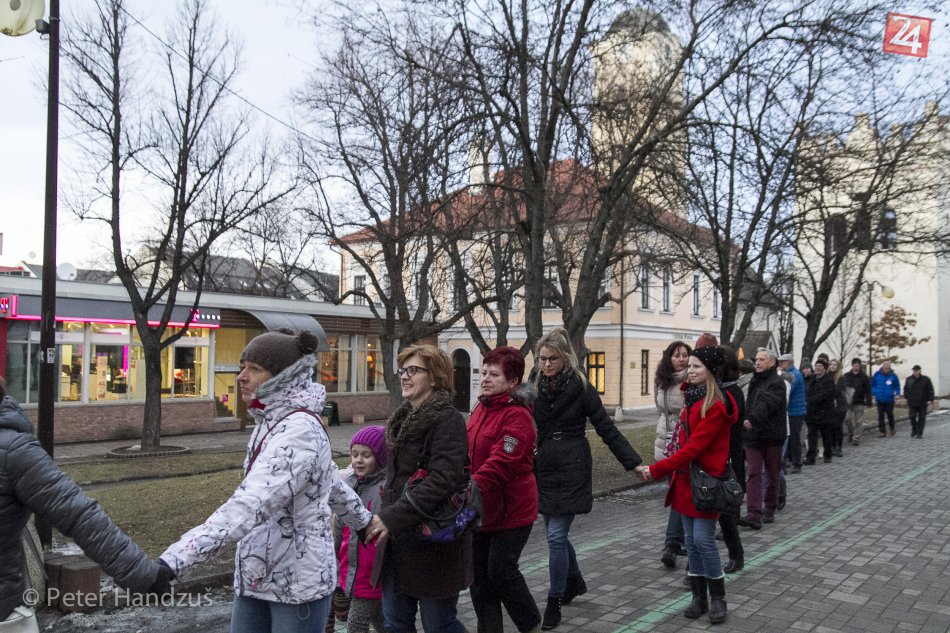 Galéria k článku Živá reťaz učiteľov v Poprade: Štrajkujúcich prišli podporiť aj rodičia a študenti