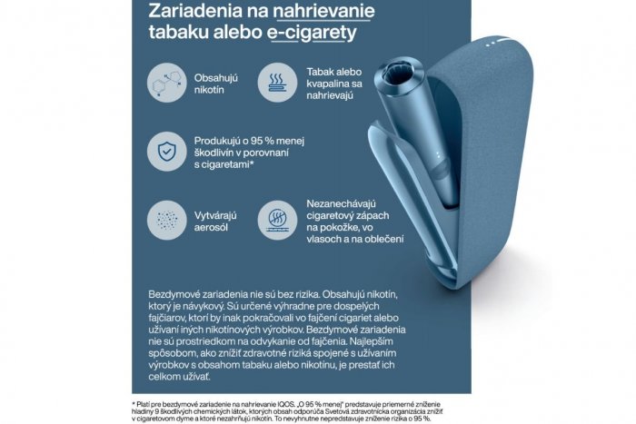 Bezdymové zariadenia nie sú bez rizika. Obsahujú nikotín, ktorý je návykový. Sú určené výhradne pre dospelých fajčiarov, ktorí by inak pokračovali vo fajčení cigariet alebo užívaní iných nikotínových výrobkov. Bezdymové zariadenia nie sú prostriedkom na odvykanie od fajčenia. Najlepším spôsobom, ako znížiť zdravotné riziká spojené s užívaním výrobkov s obsahom tabaku alebo nikotínu, je prestať ich celkom užívať.