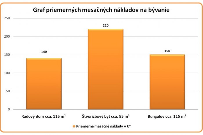 Realitný maklér udáva, že priemerné mesačné náklady na energie v 4-izbovom byte sú na úrovni cca 220 eur mesačne. „Môžu byť však aj vyššie. Z našich skúseností vyplýva, že v bungalove majiteľ zaplatí do 150 eur mesačne, v radovom dome to môže byť ešte o niekoľko eur menej. Všetko samozrejme závisí od toho, aký zdroj energií si zvolí, pri obnoviteľných zdrojoch to môže byť náklady dokonca ešte o čosi nižšie,“ zdôraznil Antoška.