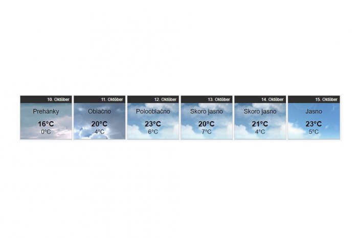 „Počas víkendu by na našom území malo zavládnuť prevažne slnečné počasie s maximálnymi teplotami od +16 do +23°C. V najteplejších lokalitách sa však teploty môžu šplhať až k +25°C,“ uvádza stránka imeteo.sk.